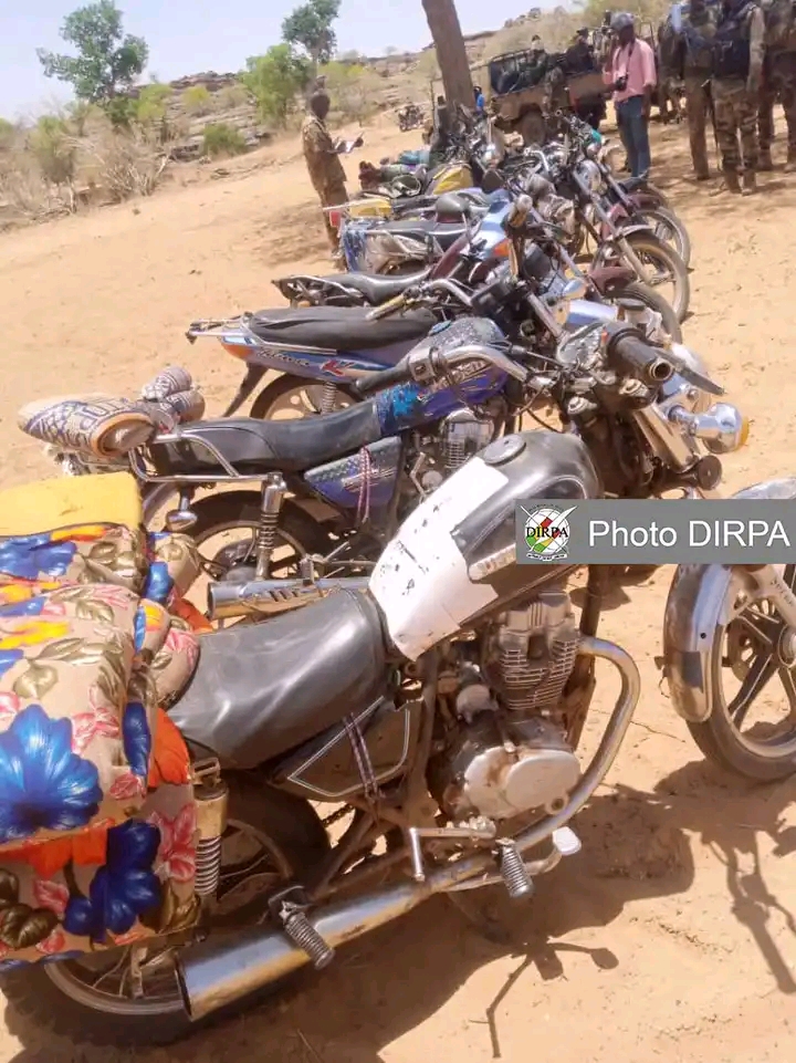 Une position terroriste d’une trentaine (30) de motos éparpillées et une dizaine (10) terroristes cachés dans une petite forêt furent traités et détruits, de même qu’une dizaine de terroristes tentant de s’échapper.