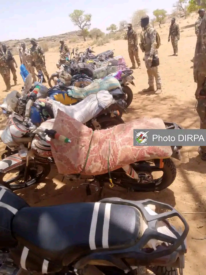 L’État-Major Général des Armées informe l’opinion que ce lundi 24 avril 2023, les Fama sont intervenues dans le secteur de Dourou, à 25 km de la localité de Bandiagara suite à une alerte d’attaque terroriste. Combinant moyens aériens et terrestres, les Fama ont ciblé en un premier lieu une vingtaine de terroristes conduisant du bétail volé à la population de Dourou. Une position terroriste d’une trentaine (30) de motos éparpillées et une dizaine (10) terroristes cachés dans une petite forêt furent traités et détruits, de même qu’une dizaine de terroristes tentant de s’échapper. 29 terroristes neutralisés ont été dénombrés à l’issue des frappes aériennes. En un deuxième lieu, les terroristes rescapés des frappes en fuite ont été pris en tenailles par les unités terrestres engagées pour l’exploitation des frappes avec : – la neutralisation de 08 terroristes, – la récupération de 22 motos récupérées, – plusieurs armes et munitions récupérées, – divers matériels de communication récupérés. L’État-Major Général des Armées salue la promptitude de la fourniture des informations par les populations ayant permis l’efficacité de la réaction des Fama contre ces terroristes, auteurs des exactions contre les populations dans la région de Bandiagara, le long de la route Sevaré, Bandiagara, Bankass et les poses d’engins explosifs improvisés sur la Route Nationale 16. Par ailleurs, ce jour 24 avril 2023, les FAMa ont mené une reconnaissance offensive sur un objectif terroriste situé à 12km au Sud-est de Boni faisant trois (03) terroristes neutralisés # une moto détruite # un (01) talkie-walkie et des objets divers récupérés. L’État-Major Général des Armées confirme encore une fois de plus l’emploi par les terroristes d’enfants soldats dans les combats de la journée. L’État-Major Général des Armées appelle les populations à la vigilance et à la mobilisation contre les terroristes en manque de combattants et se livrant à l’emploi d’enfants innocents.